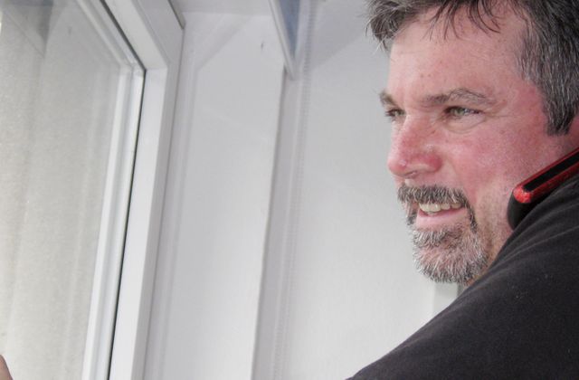 Der Putzer vom Dienst feiert Jubiläum. Vor 30 Jahren hat Lutz Hofmann seinen IGH Winterdienst gegründet. Seither kennt ihn eigentlich jeder, der hin und wieder die Epplestraße rauf und runter spaziert, denn der 53-Jährige fällt auf - durch seine Stellungen. Man sollte nicht auf falsche Gedanken kommen, denn es geht ausschließlich ums Putzen. Hofmann verrichtet seine Arbeit meistens im Stehen, aber auch sitzend auf der Leiter, in Liegestützposition wischend mit einem Arm und oft mit dem Handy, eingeklemmt zwischen Schulter und Wange. Und das nicht nur im Sommer. Im Winter sind