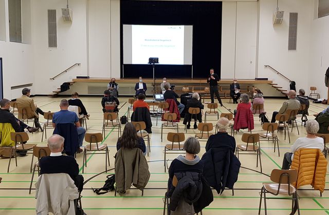 Bezirksbeirat |Bezirksvorsteher Marco-Oliver Luz präsentierte in der Turn- und Versammlungshalle an der Albstraße die Pläne der Arbeitsgruppe des Bezirksbeirates zur Entwicklung der Ortsmitte von Degerloch. Am Dienstag, den 26.10. kamen allerdings lediglich knapp über 50 interessierte BürgerInnen, um sich