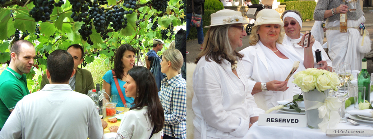 Wer schon am Vormittag die "Wandernde Weinprobe" aufsucht und später Lust auf einen Szenenwechsel verspürt, bekommt mit dem "Weißen Dinner" das absolute Kontrastprogramm. Allerdings ist hier Selbstversorgung angesagt. Aber das könnte nach dem Besuch im Scharrenberg etwas schwierig werden.