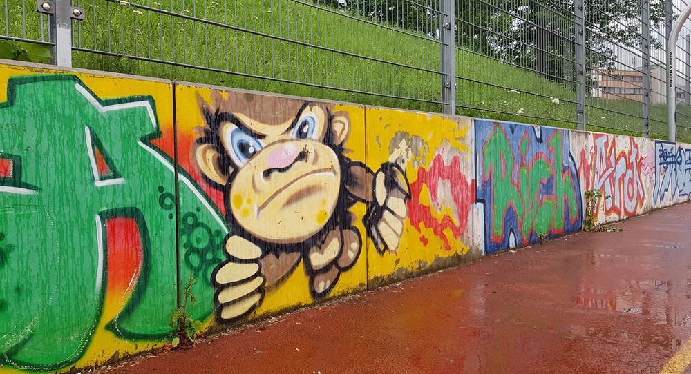Vor Jahresfrist häuften sich die Verschmutzungen von öffentlichen und privaten Anlagen durch Graffiti. Chaoten verschandelten im Stadtbezirk etliche Fassaden von Geschäften, privaten Gebäuden, Schaukästen, Informationstafeln und Fahrzeugen.