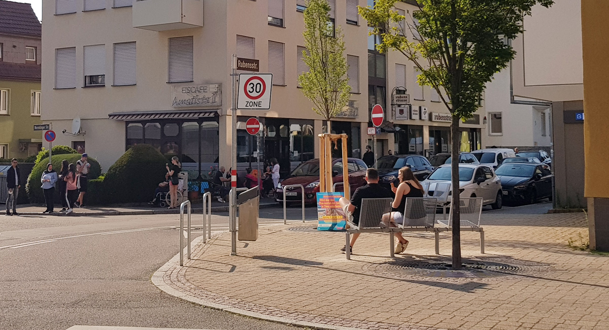 als Stuttgart Mitte-Bewohner bewundere ich euch, dass ihr sowas sogar mit Baumbepflanzung hinbekommt - ich habe schon auf diesen Bänken gesessen - ich sitze nicht schlecht, aber die Bänke könnten etwas bequemer sein, aber im Vergleich zur Tübinger Straße/Wilhelmsbau in Stuttgart-Mitte werden Bänke, falls sie mal installiert werden, einfach planlos, lieblos oft viel zu hoch befestigt - wobei doch jeder weiß, ältere Menschen, die etwas kleiner sind und sich auf einer Bank ausruhen möchten, diese Bank erst erklettern müssen - natürlich sitzt man dann dort mit hängenden Beinen äußerst unbequem.