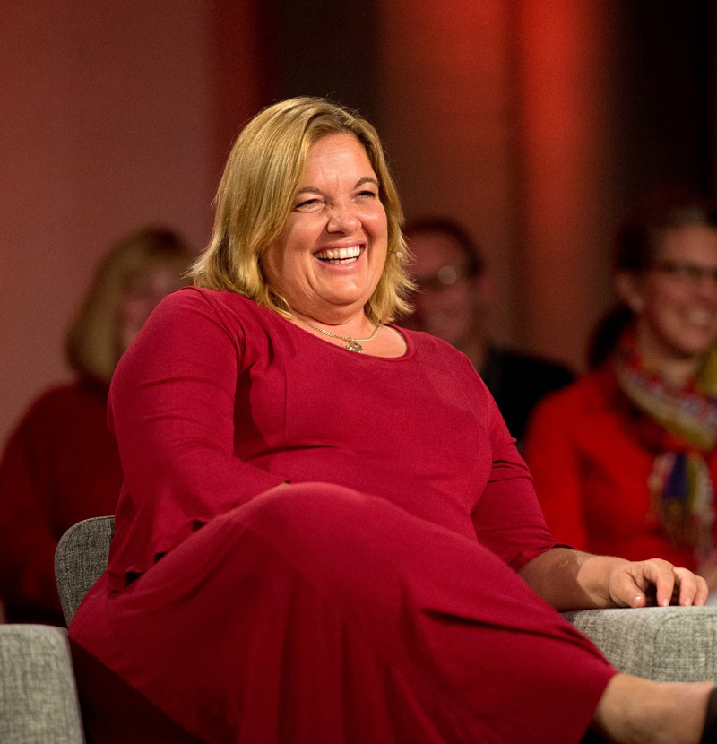 "Da ich oft in dunkelblau gekleideten Männerrunden sitze, ist mir die Aufmerksamkeit dann sicher", betont die Mutter von drei Kindern. Zahlreiche Bilder beweisen, wie Harald Schmid, Wolfgang Thierse, Christoph Sonntag, Mike Krüger, Smudo von den Fantastischen Vier und viele andere in Bekleidung mit unauffälligen Farben neben ihr untergehen. Die "Lady in Red" sticht heraus - und hat auch rhetorisch alle(s) im Griff.