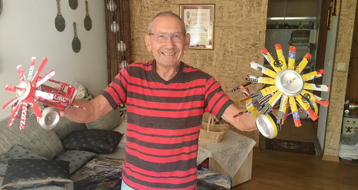 Manfred Werner sammelt Getränkedosen und fertigt daraus Flugzeuge. Viele Degerlocher erfreuen sich an seinen hausgemachten Exemplaren.