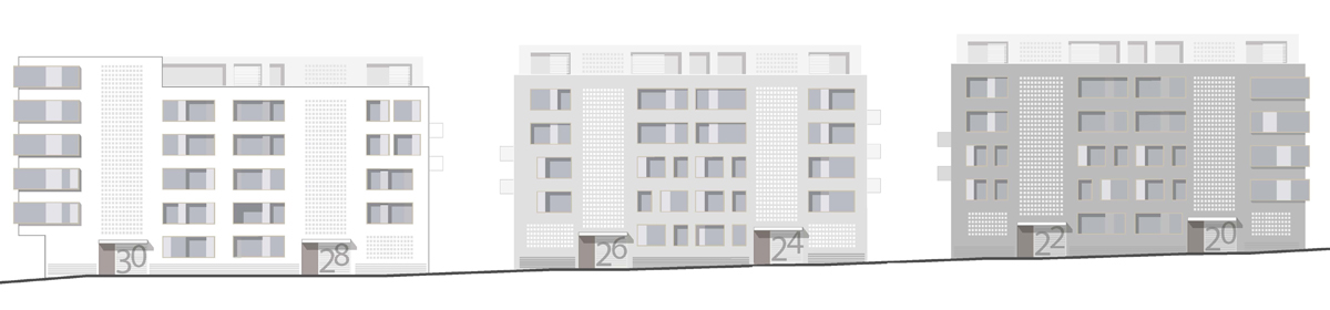 Das neue Quartier soll durch drei Gebäude mit sechs Stockwerken entlang der Albstraße (Foto unten) begrenzt werden, dahinter entstehen entlang der Straif- und Gohlstraße (Foto oben) vier kleinere Stadthäuser mit bis zu fünf Etagen. Durch die Positionierung der Gebäude entsteht im Innenbereich eine "grüne Mitte", die den Bewohnern Raum für Ruhe, Spiel und Kommunikation bietet. Zusätzlich ist an der Ecke Straif- /Gohlstraße ein öffentlicher Quartiersplatz vorgesehen.