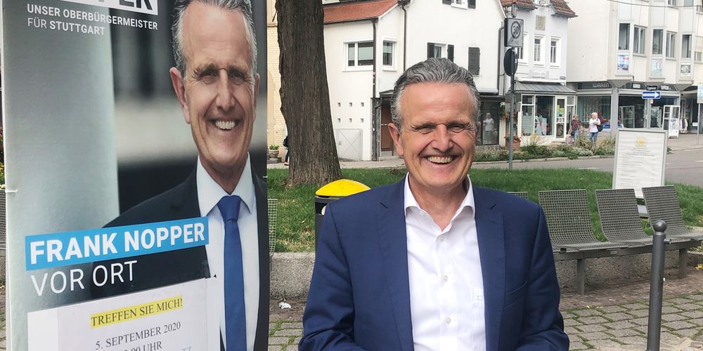 Dass der Weg auf den Sessel des nächsten Oberbürgermeisters mit der Wahl am 8. November kein leichter sein wird, weiß auch Frank Nopper, der von früheren Weggefährten als bürgernah, menschlich und humorvoll bezeichnet wird. "Die Zeiten sind schwierig, aber es geht um ein großes Ziel. Wir brauchen neuen Schwung und neue Vitalität für und in Stuttgart", sagt Nopper, der Ökonomie und Ökologie "versöhnen will". Zu den Visionen des Vaters von zwei Söhnen gehören zudem eine wirksame Wohnbaupolitik und innovative Verkehrskonzepte. "Und das mit einem echten Stuttgart-Spirit unter dem sich alle Bürger versammeln können. Unsere Stadt hat es verdient, dass sie wieder mehr leuchtet", stellt der 59-Jährige klar, der bei seinen "Zuhörtouren in und für Stuttgart" alle Stadtbezirke besucht hat.