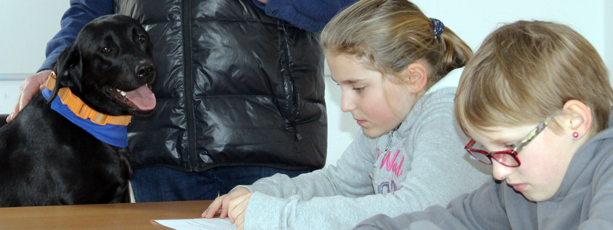 So fiel die Entscheidung, mit dem Vierbeiner eine achtmonatige Ausbildung zum Therapie-Begleithund zu machen. Sie besteht aus Theorie- und Praxisblöcken, abgeschlossen wird mit einer Prüfung. Zusätzlich muss ein Projekt durchgeführt und per Video dokumentiert werden. Neben bestimmten antrainierten Fähigkeiten wird beim Hund auch ein Wesenstest durchgeführt. "Für das Projekt habe ich mir eine Gruppe ausgesucht, die richtig schwer zu betreuen war", berichtet Vollmer und erklärt weiter: "Ziel war es, das Arbeitsverhalten der Kinder so zu ändern, dass sie aufnahmebereit sind."