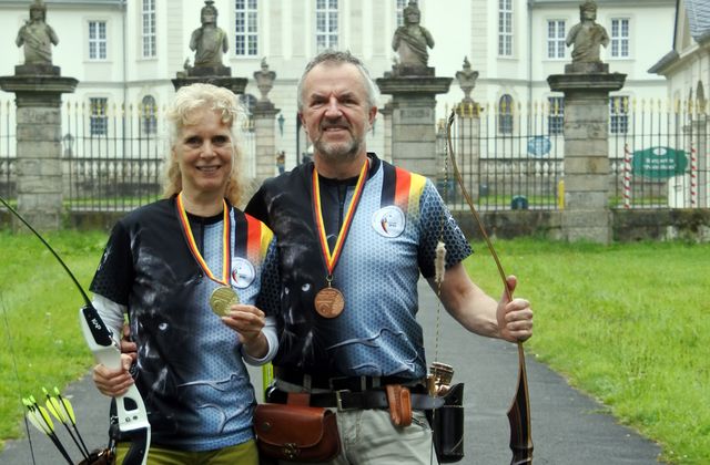 SV Hoffeld |Das Degerlocher Ehepaar Anja Luisa und Wolf-Martin Riedel war bei den Deutschen Meisterschaften der Feld- und Bogenschützen in Fulda äußerst erfolgreich und stand jeweils auf dem Podest. Im Wald von Schloss Fasanerie gewann Anja Luisa den Titel in der Disziplin "Feld und Jagd", in der