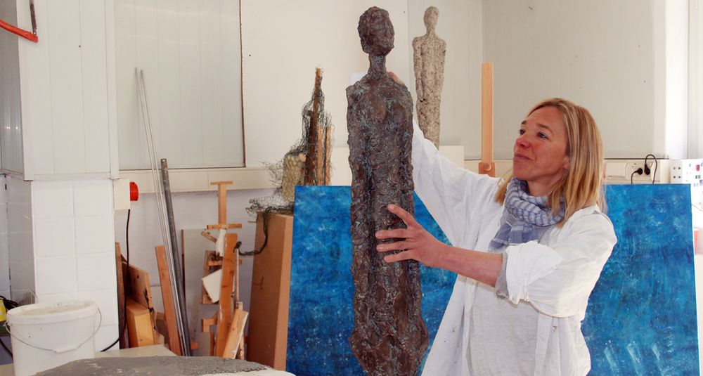 Das Erdgeschoss ist das Revier von Heidi Sand (49). Sie hat als Extrem-Bergsteigerin einige Achttausender bewältigt und sucht den Ausgleich in der Bildhauerei. "Ab September biete ich auch Workshops für Erwachsene und Kinder an", sagt die ehemalige Waldschülerin, die schon auf der Spitze des Mount Everest stand und weitere Expeditionen plant.