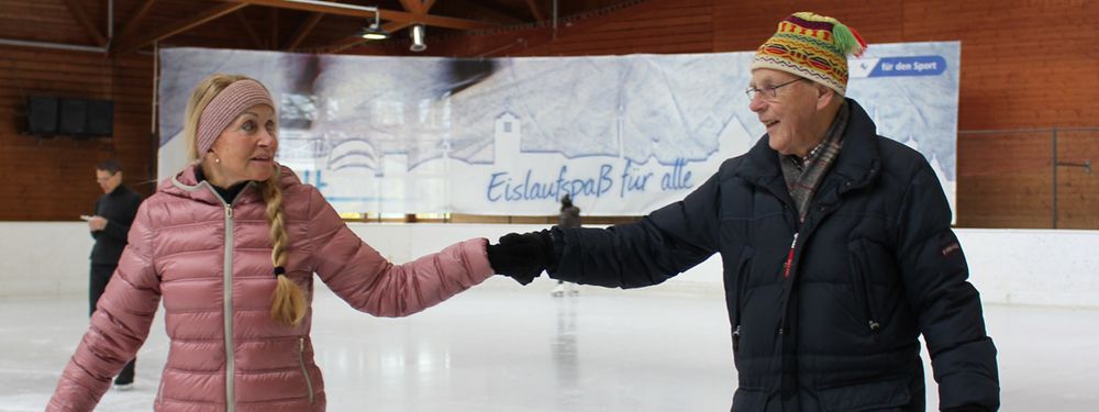 Er bringt auf der Waldau kleinen Kindern die Eislauftechnik bei und dürfte der älteste Eislauflehrer in Deutschland sein - der 79-jährige Günter Tyroler.