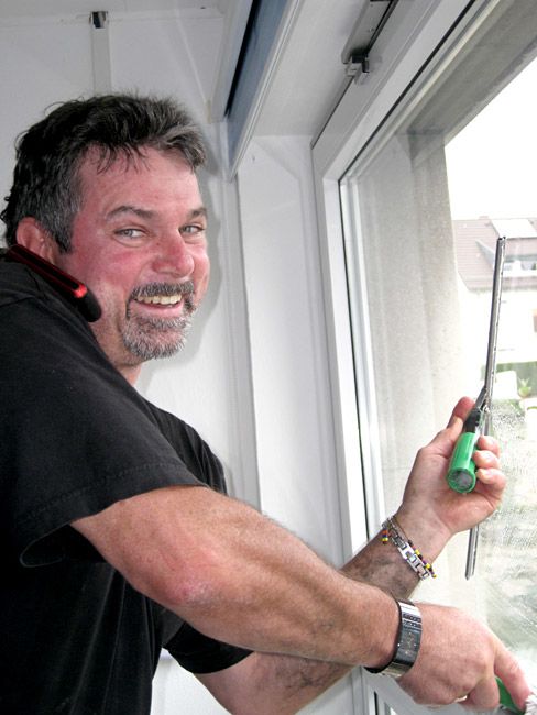 Schwamm in der Hand, Handy zwischen Ohr und Schulter geklemmt und nebenher noch ein Gespräch mit einem Passanten. Das Ganze stehend auf einer Leiter vor einem Ladengeschäft auf der Epplestraße. So kennen viele Hofmann, den Saubermann. Gestatten, Lutz Hofmann, Unternehmer und Inhaber der Firma IGH Winterdienst aus dem Gewerbegebiet Tränke. Von wegen Winter, Hofmann und seine Männer putzen rund ums Jahr so ziemlich alles, was ihnen in den Weg kommt. Und der Chef immer mittendrin. "Es ist ein schönes Gefühl, wenn ein verdrecktes Treppenhaus wieder glänzt", sagt Hofmann und strahlt dabei wie ein kleines Kind. Putzen aus Leidenschaft.