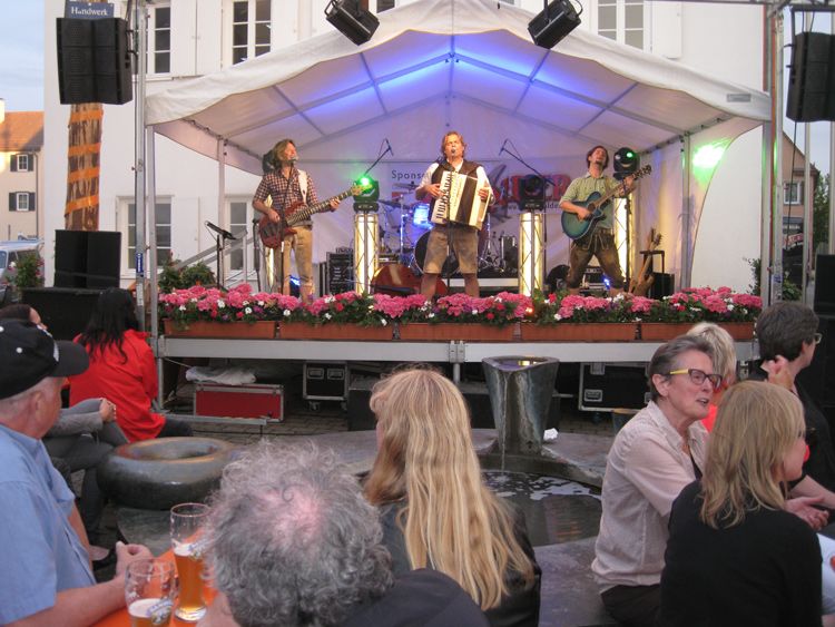 Die Bühne ist auch das Reich der Trenkwalder. Die Auftritte der Alpenrock-Kapelle auf dem Degerlocher Marktplatz haben ebenfalls schon Tradition im Stadtbezirk. Verantwortlich dafür ist der von Rolf Reihle gegründete "Freundeskreis Wildermieming" in Kooperation mit dem Gewerbe- und Handelsverein und der Werbegemeinschaft. Und so wird die Band um Frontman Hubsi Trenkwalder aus jenem Ort in Tirol am Sonntag, den 24. August, ab 17 Uhr, beim Marktplatzfest wieder mit Berg- und Tal-Liedern für Stimmung sorgen. "Aber dabei wird es nicht bleiben, je später der Abend um so rockiger wird es", sagt Rolf Reihle. Das Live-Spektakel beginnt aber bereits um 15 Uhr mit reichlich Lokalkolorit, wenn die "Strippenzieher” loslegen. Die Band der Degerlocher Peter Mader und Uwe Frech bedienen das Genre rund um Schlager, Country, Pop und Rock.